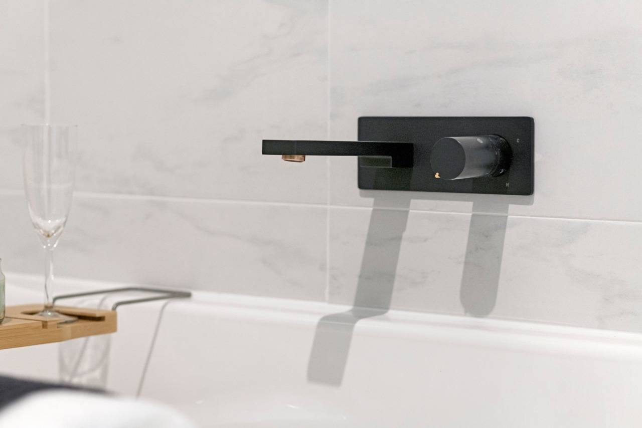 - Chef's kitchen with glass splashback & stone benches